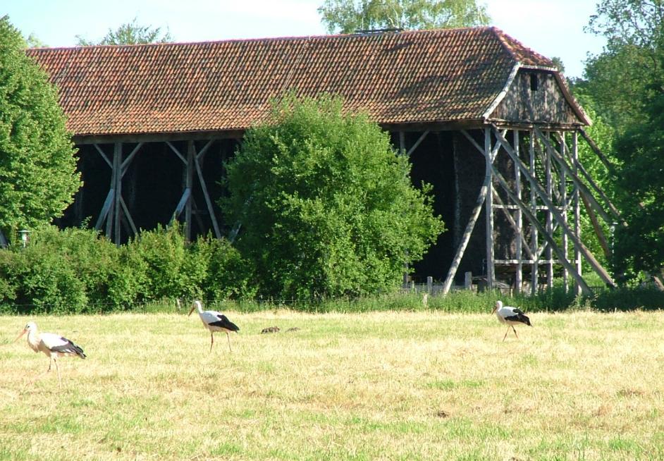 Störche auf der "Salzwiese" vor westl. Gradierwerk (2005)