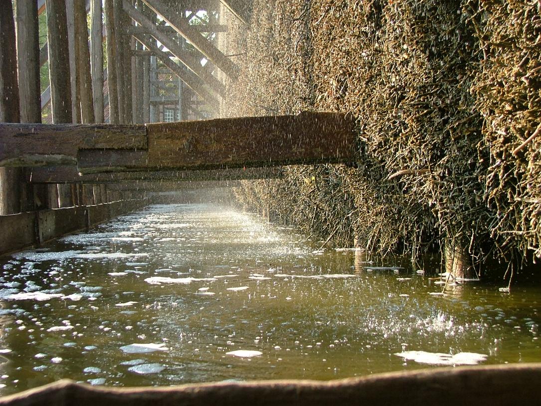 Beim Heruntertröpfeln der Sole am Dorngradierwerk verdunstet Wasser und